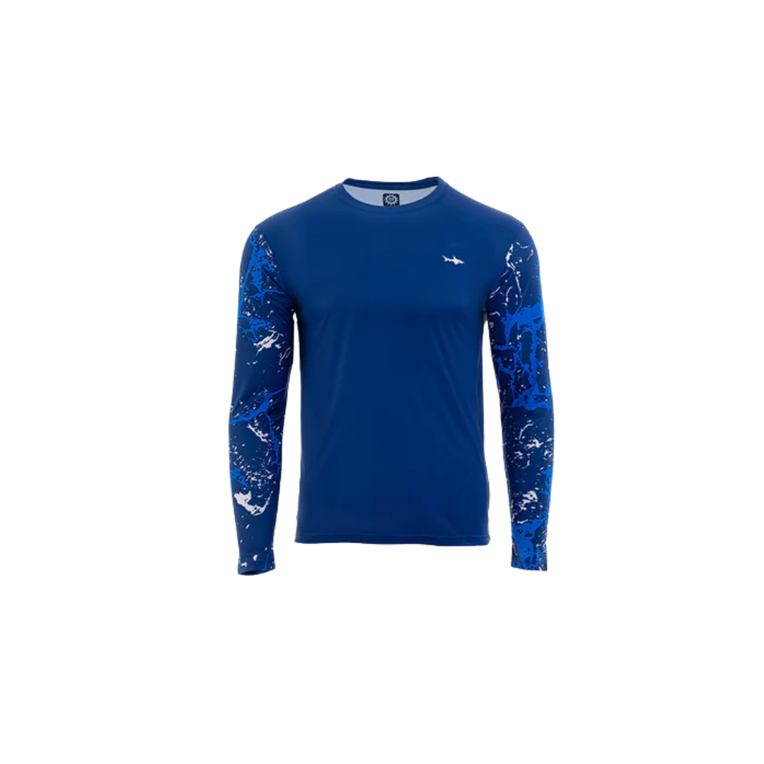 Bring a bold marine vibe to your water adventures. Featuring a vibrant blue bodice with dark ocean blue printed sleeves, it’s a sleek and sporty look inspired by the depths of the sea.