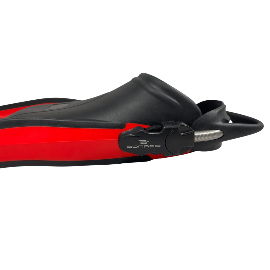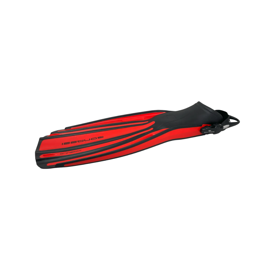Las aletas Bonassi Mobula están diseñadas para un movimiento potente y eficiente en el agua con el mínimo esfuerzo. Su avanzada construcción de palas canaliza el agua eficazmente para proporcionar una propulsión suave y constante, ayudándote a conservar energía en cada inmersión. Fabricadas con materiales duraderos y flexibles, proporcionan un excelente control y estabilidad incluso con corrientes fuertes. La Mobula es una aleta de talón abierto que requiere el uso de escarpines de buceo y es ideal para bucear tanto en aguas cálidas como frías. Combinadas con los escarpines Bonassi Maestro, ofrecen un ajuste seguro y cómodo. Equipadas con correas de resorte de acero inoxidable para facilitar su colocación y retirada, las aletas Mobula son una opción fiable para quienes buscan rendimiento, comodidad y versatilidad.
